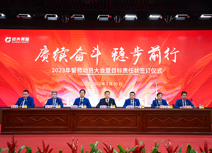 賡續(xù)奮斗 穩(wěn)步前行 經(jīng)典集團(tuán)2023年誓師動(dòng)員大會(huì)暨目標(biāo)責(zé)任狀簽訂儀式召開。