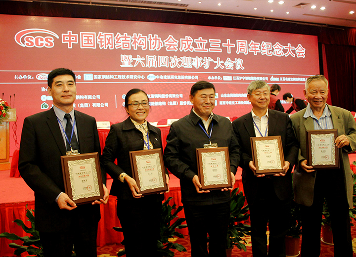 參加中國(guó)鋼結(jié)構(gòu)協(xié)會(huì)成立三十周年紀(jì)念大會(huì)當(dāng)選常務(wù)理事單位,榮獲首批全國(guó)鋼結(jié)構(gòu)行業(yè)AAA級(jí)信用企業(yè)、中國(guó)鋼結(jié)構(gòu)行業(yè)杰出貢獻(xiàn)人物、2014年度鋼結(jié)構(gòu)杰出人才獎(jiǎng)。