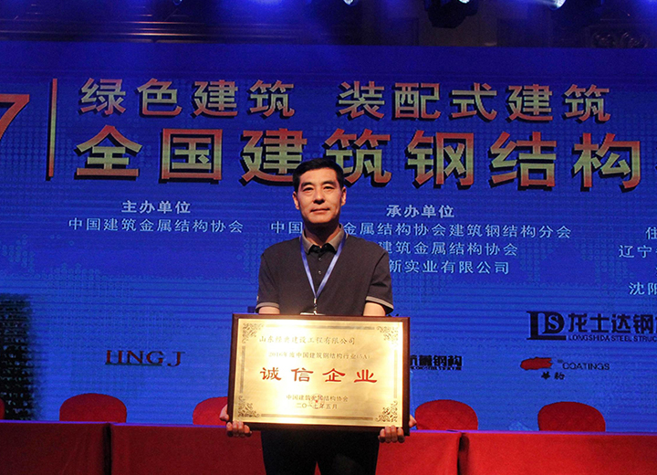 公司榮獲2016年度中國(guó)建筑鋼結(jié)構(gòu)行業(yè)(5A)誠(chéng)信企業(yè)稱號(hào)。