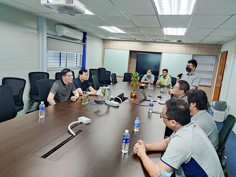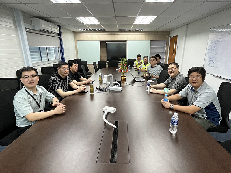 中國京冶建設(shè)工程(新加坡)有限公司執(zhí)行副總裁許亞男,執(zhí)行副總裁陳曉冬,鋼結(jié)構(gòu)高級運營經(jīng)理翟東,鋼結(jié)構(gòu)運營副經(jīng)理胡明陪同參觀座談。