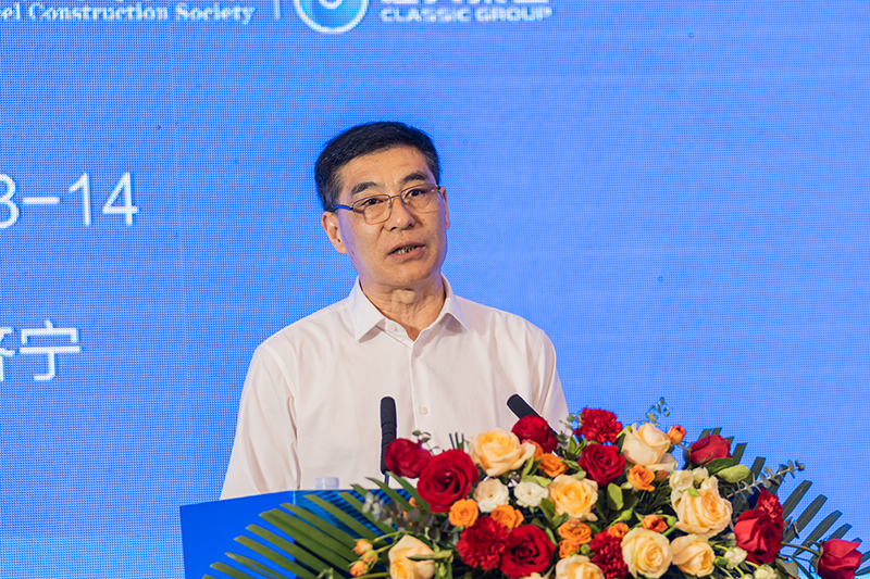 中國鋼結(jié)構(gòu)協(xié)會(huì)副會(huì)長(zhǎng)、山東省鋼結(jié)構(gòu)行業(yè)協(xié)會(huì)副會(huì)長(zhǎng)、山東經(jīng)典重工集團(tuán)股份有限公司董事會(huì)主席苗樹文致辭