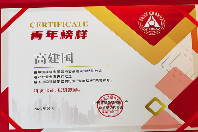 高建國(guó)同志榮獲中國(guó)建筑鋼結(jié)構(gòu)行業(yè)青年榜樣稱(chēng)號(hào)