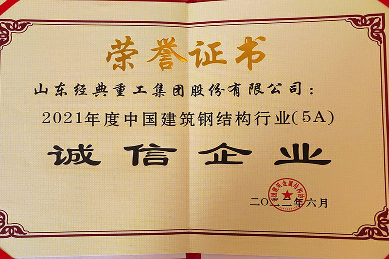 公司榮獲中國(guó)建筑鋼結(jié)構(gòu)行業(yè)5A誠(chéng)信企業(yè)稱(chēng)號(hào)