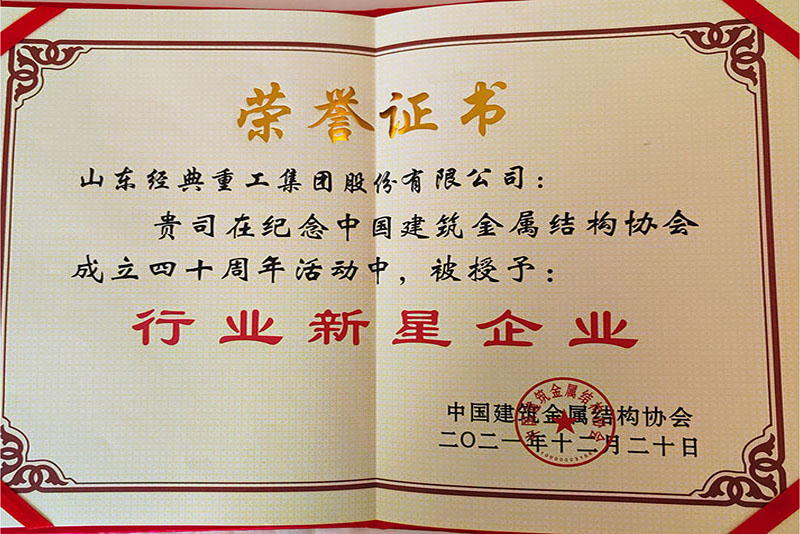 公司榮獲中國(guó)建筑金屬結(jié)構(gòu)協(xié)會(huì)行業(yè)新星企業(yè)稱(chēng)號(hào)