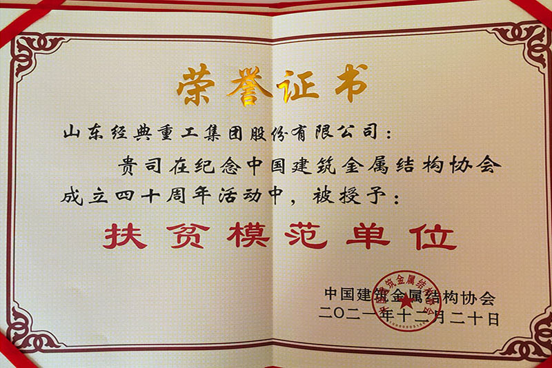 公司榮獲中國(guó)建筑金屬結(jié)構(gòu)協(xié)會(huì)扶貧模范單位稱(chēng)號(hào)