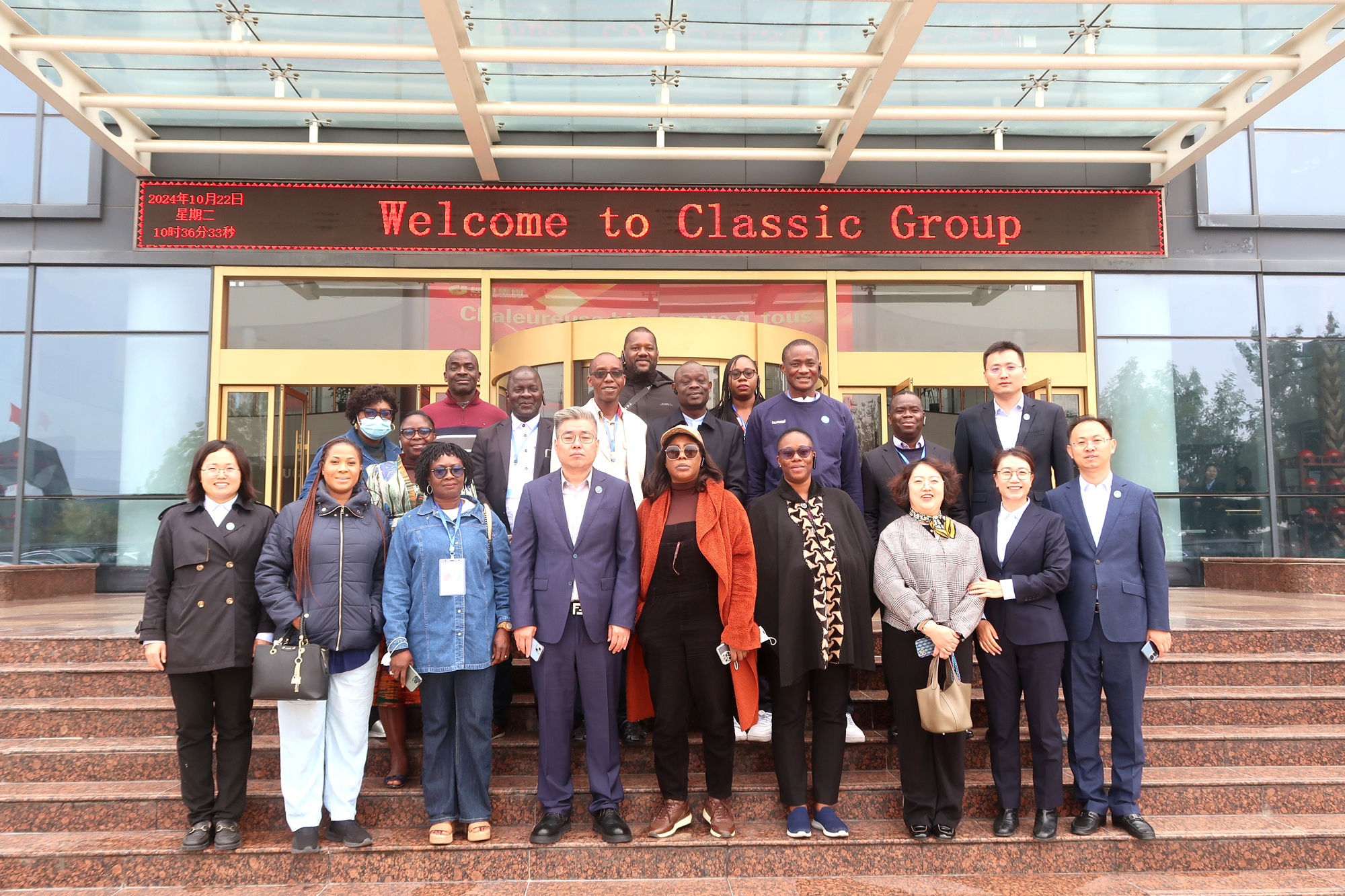 10月22日上午,商務(wù)部援外培訓(xùn)項(xiàng)目“科特迪瓦中高級(jí)外交官研修班”一行20余人,在山東外貿(mào)職業(yè)學(xué)院國(guó)際官員研修學(xué)院院長(zhǎng)王保紅帶隊(duì)下,蒞臨經(jīng)典集團(tuán)就工業(yè)發(fā)展經(jīng)驗(yàn)、中外經(jīng)貿(mào)合作等方面的經(jīng)驗(yàn)做法進(jìn)行參觀交流。經(jīng)典集團(tuán)副總經(jīng)理兼生產(chǎn)總監(jiān)張琦、副總經(jīng)理侯士輝等陪同。