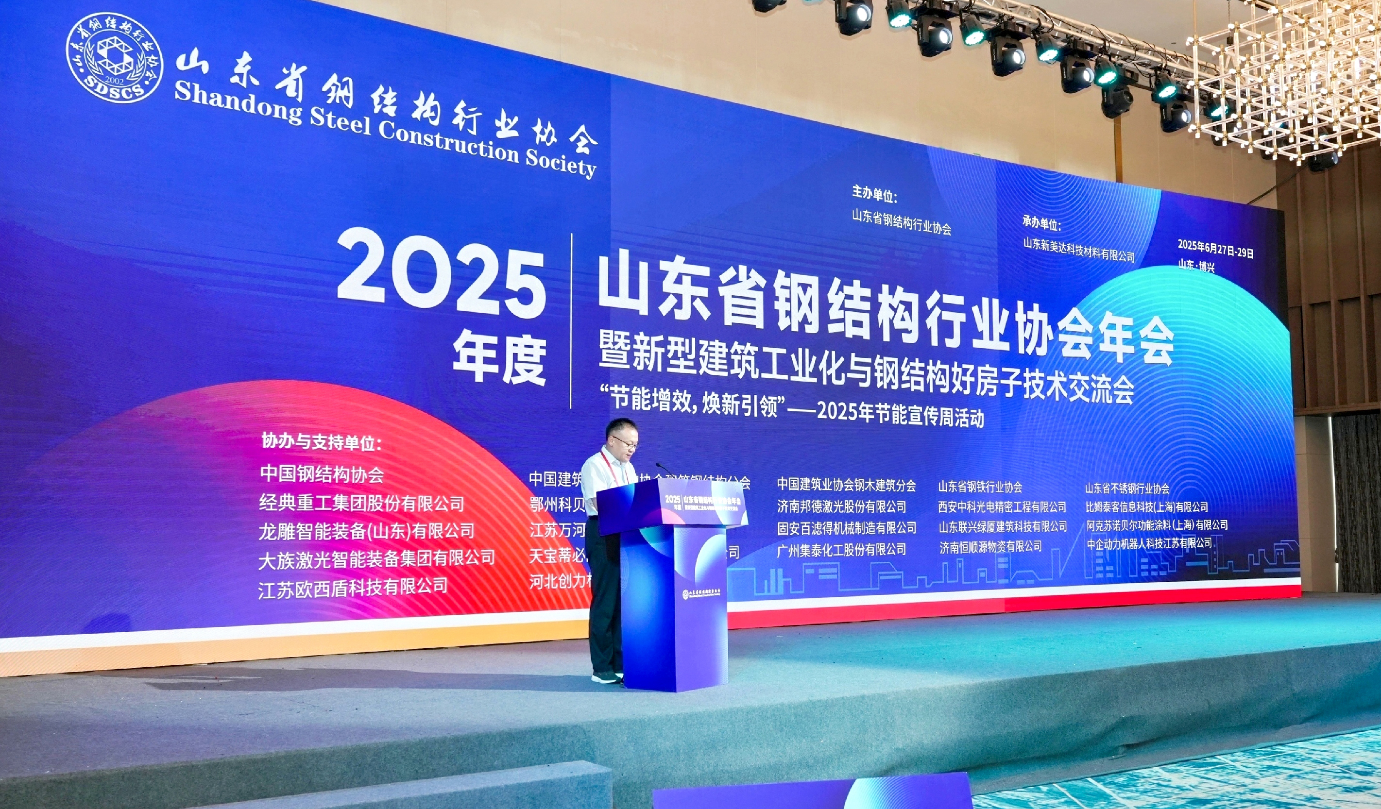 為全面落實(shí)國家“十四五”建筑業(yè)發(fā)展規(guī)劃關(guān)于“推廣智能建造與新型建筑工業(yè)化協(xié)同發(fā)展”的戰(zhàn)略部署,加快鋼結(jié)構(gòu)建筑向智能化設(shè)計(jì)、工業(yè)化生產(chǎn)、數(shù)字化運(yùn)維轉(zhuǎn)型升級(jí),6月27—29日,2025年度山東省鋼結(jié)構(gòu)行業(yè)協(xié)會(huì)年會(huì)暨新型建筑工業(yè)化與鋼結(jié)構(gòu)好房子技術(shù)交流會(huì)在濱州市隆重舉辦,經(jīng)典集團(tuán)董事長史振華率領(lǐng)技術(shù)營銷團(tuán)隊(duì)參加年會(huì)系列活動(dòng)。