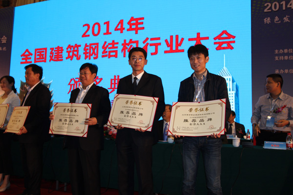 開(kāi)幕式上,中國(guó)建筑金屬協(xié)會(huì)對(duì)鋼結(jié)構(gòu)企業(yè)和個(gè)人進(jìn)行了頒獎(jiǎng),山東經(jīng)典建設(shè)工程有限公司被授予2014-2016年中國(guó)建筑鋼結(jié)構(gòu)行業(yè)推薦品牌信譽(yù)AAA企業(yè),經(jīng)典集團(tuán)副總經(jīng)理鄭建康上臺(tái)領(lǐng)取了證書。經(jīng)典集團(tuán)還參加了“四新”推廣交流會(huì)、技術(shù)論壇、鋼結(jié)構(gòu)配套產(chǎn)品展示活動(dòng)等。