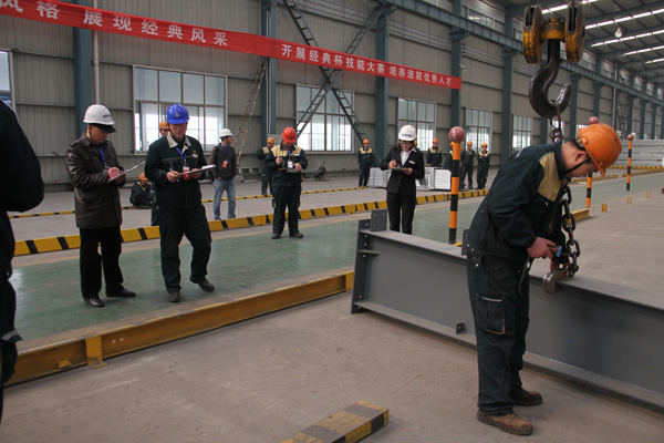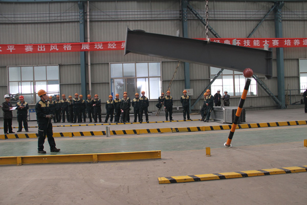 比賽在集團(tuán)公司輕鋼車間進(jìn)行。比賽活動將理論學(xué)習(xí)和實踐操作相結(jié)合,就安全知識的理解、吊車性能的掌握、實際吊裝操作三項內(nèi)容進(jìn)行了競賽。實際操作中設(shè)計了起吊鋼構(gòu)件撞球動作,要求在規(guī)定的時間內(nèi)準(zhǔn)確完成技術(shù)動作。經(jīng)過緊張而激烈的比賽和成績綜合評比,烤梁班組的馮勇獲得起重機(jī)技能比賽第一名,門焊機(jī)班組李寶光、烤梁班組的張世凱分別獲得起重機(jī)技能比賽第二名;組立機(jī)班組黃元德、拼裝班組孔祥文、史保健分別獲得起重機(jī)技能比賽第三名,并授予“青年崗位技術(shù)能手”榮譽(yù)稱號;姜勝利、顧凱、李小明、李慶分別獲得起重機(jī)技能比賽優(yōu)秀獎,并授予“技能操作優(yōu)勝者”榮譽(yù)稱號。