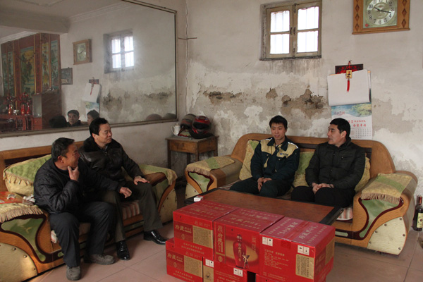 每到一戶,集團(tuán)領(lǐng)導(dǎo)與職工家屬親切握手,面對面促膝交談,了解職工的家庭收入、子女入學(xué)、外出打工等有關(guān)情況,送去大米、面粉、食用油等生活物資和600元慰問金。苗董事長表示,經(jīng)典集團(tuán)將一如既往的關(guān)愛職工,特別是困難家庭職工,讓職工感受到公司大家庭的溫暖,切實(shí)解決職工的生活困難,使職工全身心投入到公司發(fā)展中去。并叮嚀他們?nèi)缛粲惺裁蠢щy可以提出來,集團(tuán)公司會傾力幫助,公司就是一個(gè)大家庭,每位職工困難,都會牽動整個(gè)領(lǐng)導(dǎo)班子的心,集團(tuán)公司會盡最大努力,想盡一切辦法,最大限度地讓每位困難職工及其家屬過上一個(gè)安樂祥和的春節(jié)。