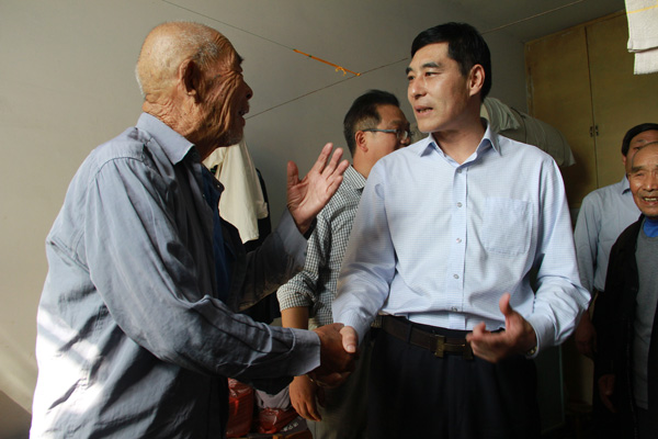 集團公司董事長苗樹文到興隆莊鎮(zhèn)敬老院,與老人親切交談