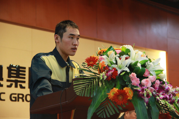 隨后,分條班組的高輝作為新招員工代表作了表態(tài)發(fā)言。