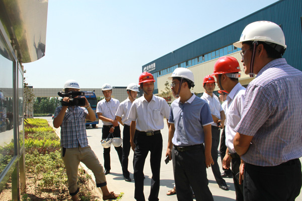 團支部書記周超陪同濟寧團市委書記鐘稱生等領(lǐng)導(dǎo)一同參觀集團公司生產(chǎn)廠區(qū)