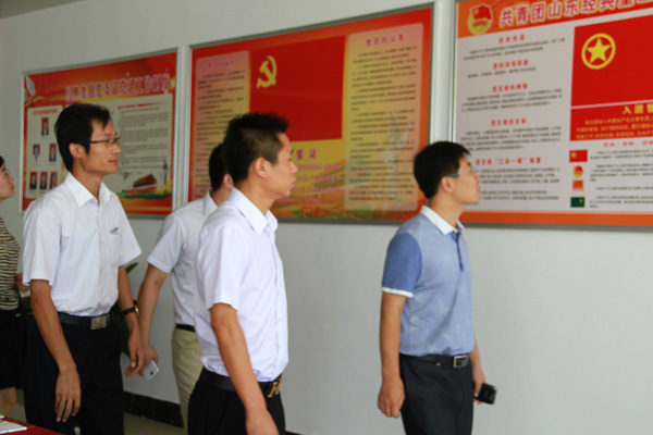 團支部書記周超陪同濟寧團市委書記鐘稱生等領(lǐng)導(dǎo)一同參觀團支部活動辦公室