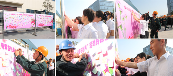 全體員工在許愿墻上貼下“最想對(duì)母親說的話,最想幫母親實(shí)現(xiàn)的愿望”