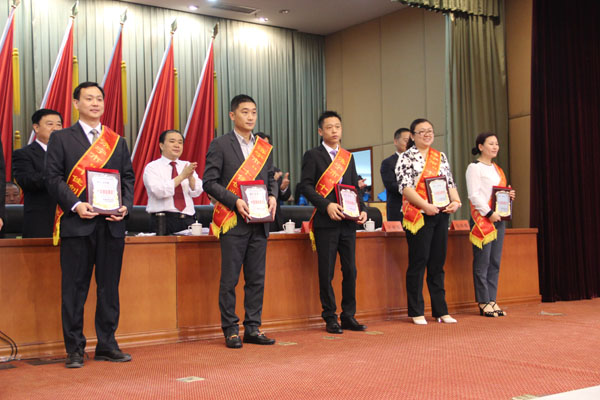 市委領(lǐng)導(dǎo)為周超董事長(zhǎng)頒發(fā)獎(jiǎng)牌(中間)