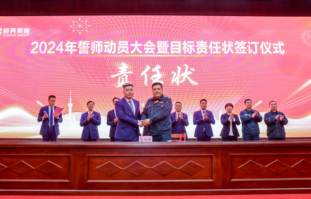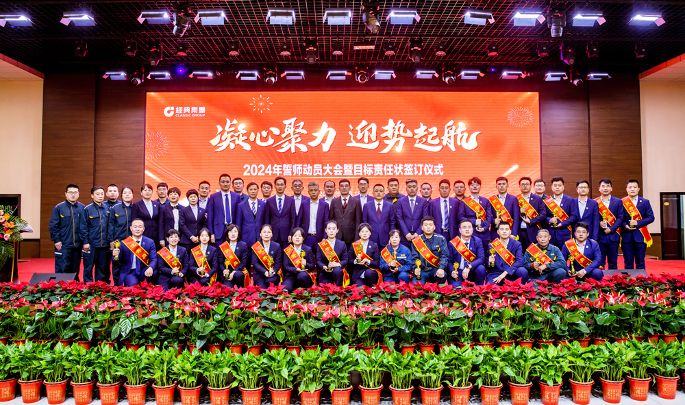 號角聲動,誓言鏗鏘。本次大會的成功召開,標(biāo)志著經(jīng)典集團(tuán)踏上了2024年新的征程,賦予了新的使命和挑戰(zhàn)。集團(tuán)上下要緊緊圍繞公司發(fā)展的總戰(zhàn)略要求,增強(qiáng)“舍我其誰”的使命感、“時不我待”的緊迫感,以更加昂揚(yáng)的姿態(tài)、更加團(tuán)結(jié)的力量乘勢而上、接續(xù)奮斗,競相發(fā)展、全面進(jìn)位,全力以赴推動集團(tuán)高質(zhì)量發(fā)展加快突破,共同開創(chuàng)經(jīng)典集團(tuán)更加美好的未來!