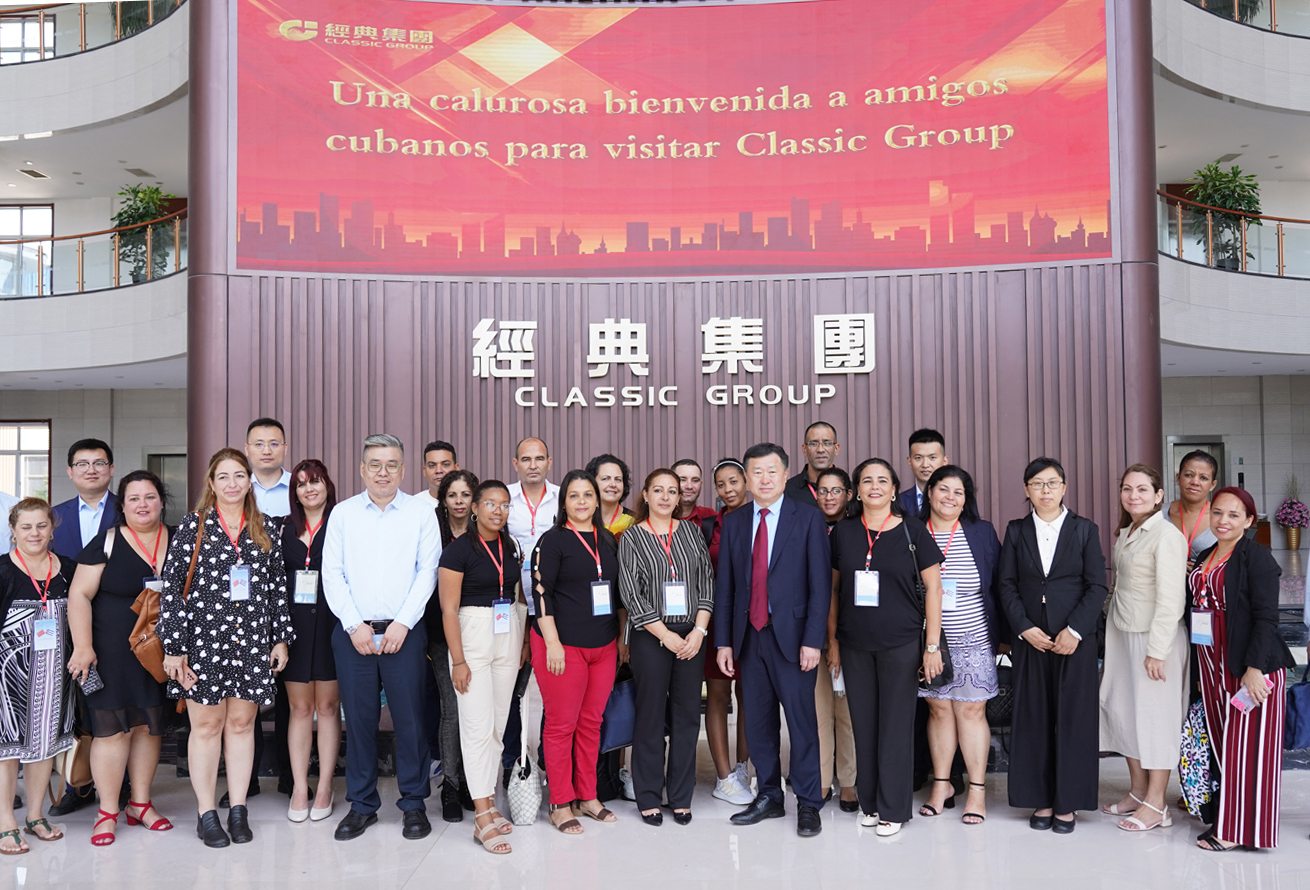 5月13日上午,古巴貨幣財稅政策研修班學員20余人,在山東外貿(mào)職業(yè)學院院長刁建東的陪同下,蒞臨經(jīng)典集團就企業(yè)財稅管理政策進行參觀交流。經(jīng)典集團副總經(jīng)理兼生產(chǎn)總工張琦、經(jīng)典集團副總經(jīng)理侯士輝等陪同。